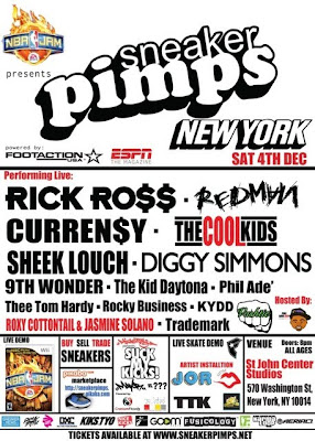 Sneaker Pimps hit New York , on Saturday December 4th at St John's Center Studios, 570 Washington St go and enjoy sneakers , performances by artist like Diggy Simmons , Rick Ross , Curren$y , The Cool Kids and many more. CLICK HERE to buy your tickets now !
